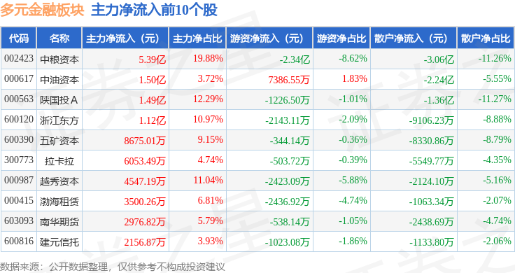 从资金流向上来看,当日多元金融板块主力资金净流入11.61亿元,游资资金净流出2.31亿元,散户资金净流出9.29亿元。多元金融板块个股资金流向见下表: