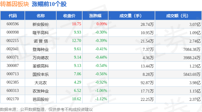 证券之星消息,9月17日转基因板块较上一交易日下跌0.67%,节能铁汉领跌。当日上证指数报收于3876.34,上涨0.37%。深证成指报收于13215.46,上涨1.16%。转基因板块个股涨跌见下表: