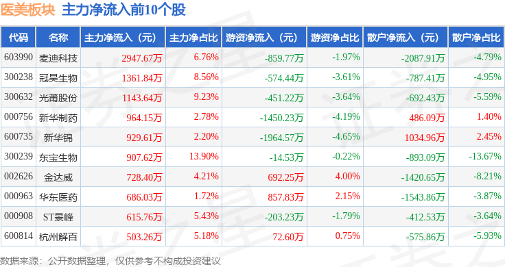 从资金流向上来看,当日医美板块主力资金净流出8.18亿元,游资资金净流入2.32亿元,散户资金净流入5.86亿元。医美板块个股资金流向见下表: