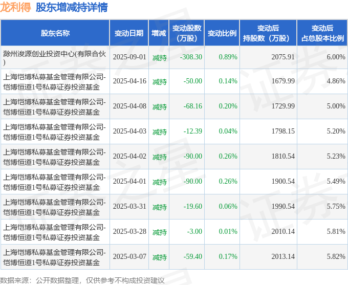 该股近半年内有股东持股变动,合计净减持700.85万股,股东增减持明细如下表: