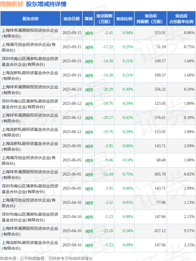 该股近半年内有股东持股变动,合计净减持243.33万股,股东增减持明细如下表: