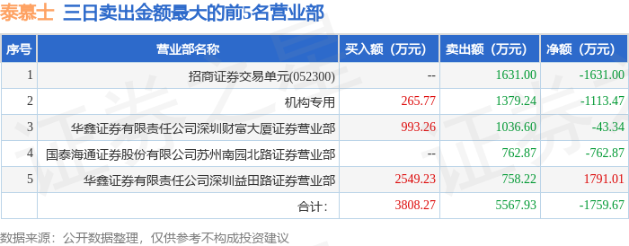 从龙虎榜公布的三日买卖数据来看,机构合计净卖出1113.47万元。