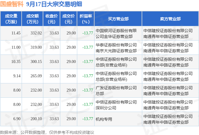 证券之星消息,9月17日国盛智科发生大宗交易,交易数据如下: