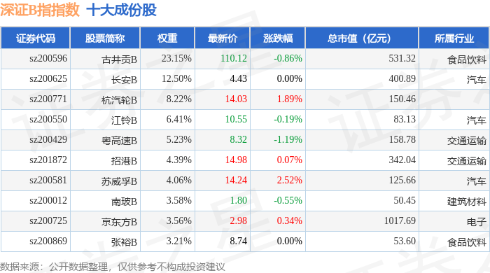 资金流向方面,深证B指(399108)指数成份股当日主力资金净流出合计365.63万元,游资资金净流出合计716.07万元,散户资金净流入合计1081.7万元。成份股资金流向详情见下表: