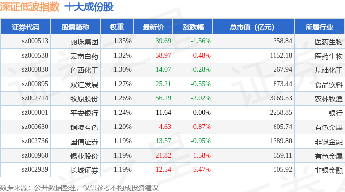 深证低波(399661)指数十大成份股详情如下: