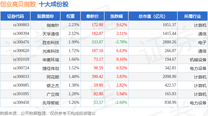 证券之星消息,9月17日,创业高贝(399694)指数报收于4194.6点,涨1.14%,成交1953.24亿元,换手率5.21%。当日该指数成份股中,上涨的有52家,长盈精密以12.44%的涨幅领涨,下跌的有47家,药石科技以5.11%的跌幅领跌。