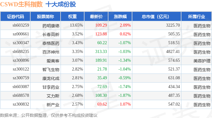 近10日内CSWD生科(399993)指数成份股做了调整,新纳入了2只股票。