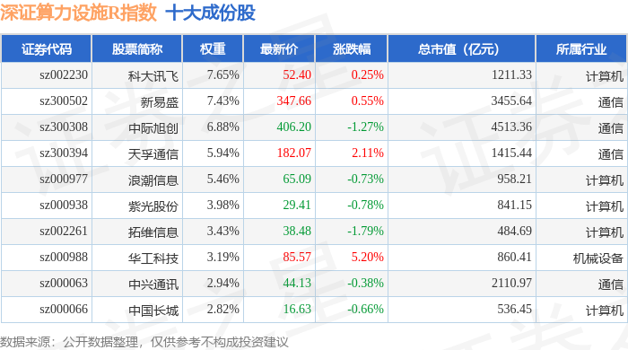 深证算力设施R(470051)指数十大成份股详情如下: