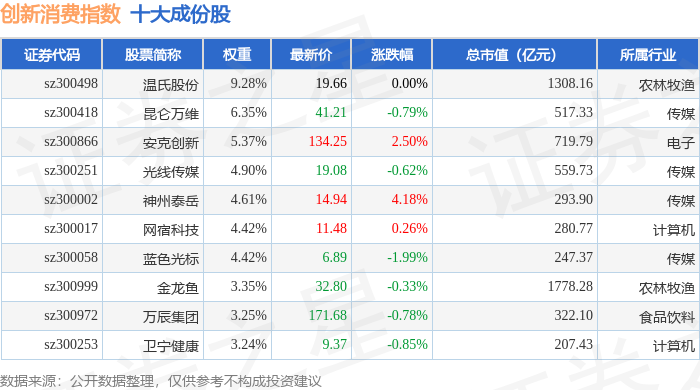 资金流向方面,创新消费(970041)指数成份股当日主力资金净流出合计13.63亿元,游资资金净流入合计1.81亿元,散户资金净流入合计11.82亿元。成份股资金流向详情见下表: