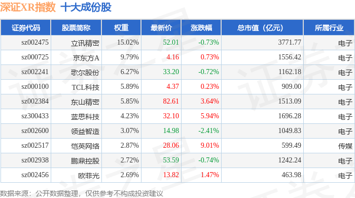 深证XR(970046)指数十大成份股详情如下: