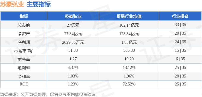 苏豪弘业2025年中报显示,公司主营收入39.19亿元,同比上升10.73%;归母净利润2629.55万元,同比上升34.72%;扣非净利润582.22万元,同比下降76.35%;其中2025年第二季度,公司单季度主营收入19.21亿元,同比上升2.93%;单季度归母净利润2292.15万元,同比上升39.07%;单季度扣非净利润685.58万元,同比下降69.93%;负债率56.52%,投资收益1498.28万元,财务费用601.31万元,毛利率4.37%。苏豪弘业(600128)主营业务:范围涵盖出口、进口及国内贸易,公司出口贸易主营玩具、宠物用品等大类产品,进口贸易主营医疗器械、机电设备等产品,内贸业务主营煤炭、液氨、尿素等,文化和投资两个特色业务作为公司贸易主业的补充。