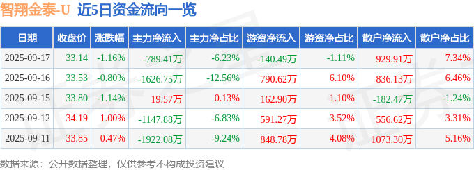 证券之星消息,截至2025年9月17日收盘,智翔金泰(688443)报收于33.14元,下跌1.16%,换手率3.28%,成交量3.83万手,成交额1.27亿元。