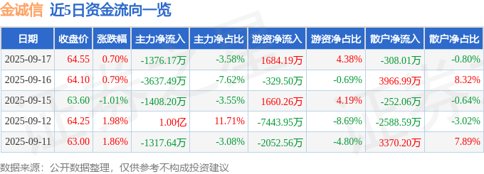 9月17日的资金流向数据方面,主力资金净流出1376.17万元,占总成交额3.58%,游资资金净流入1684.19万元,占总成交额4.38%,散户资金净流出308.01万元,占总成交额0.8%。