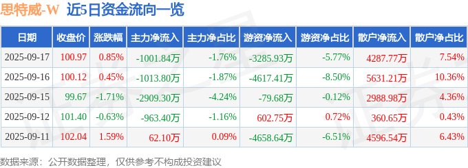 9月17日的资金流向数据方面,主力资金净流出1001.84万元,占总成交额1.76%,游资资金净流出3285.93万元,占总成交额5.77%,散户资金净流入4287.77万元,占总成交额7.54%。