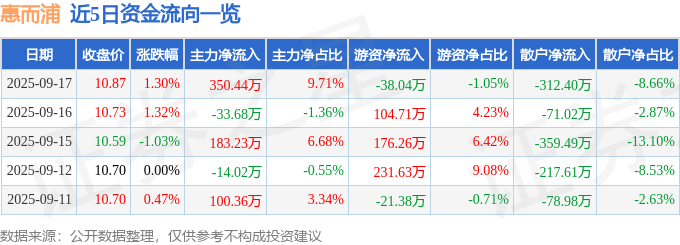 9月17日的资金流向数据方面,主力资金净流入350.44万元,占总成交额9.71%,游资资金净流出38.04万元,占总成交额1.05%,散户资金净流出312.4万元,占总成交额8.66%。
