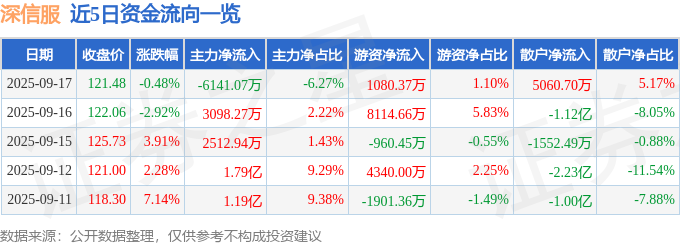 9月17日的资金流向数据方面,主力资金净流出6141.07万元,占总成交额6.27%,游资资金净流入1080.37万元,占总成交额1.1%,散户资金净流入5060.7万元,占总成交额5.17%。