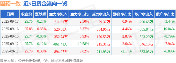 证券之星消息,截至2025年9月17日收盘,国药一致(000028)报收于25.76元,下跌0.27%,换手率0.69%,成交量3.28万手,成交额8445.22万元。