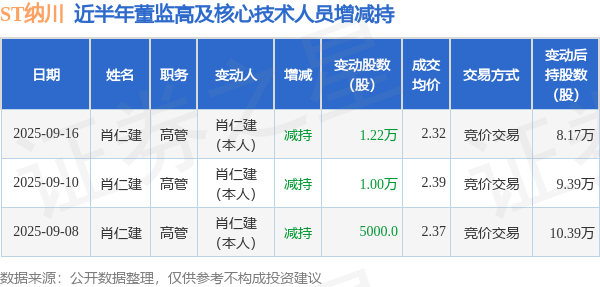 ST纳川近半年内的董监高及核心技术人员增减持详情如下: