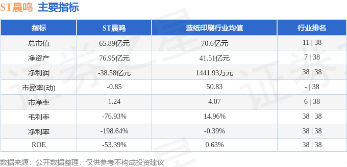 ST晨鸣2025年中报显示,公司主营收入21.07亿元,同比下降84.83%;归母净利润-38.58亿元,同比下降13567.59%;扣非净利润-36.45亿元,同比下降1245.82%;其中2025年第二季度,公司单季度主营收入13.09亿元,同比下降81.62%;单季度归母净利润-24.06亿元,同比下降8043.21%;单季度扣非净利润-21.84亿元,同比下降4820.31%;负债率85.93%,投资收益-4.31亿元,财务费用8.05亿元,毛利率-76.93%。ST晨鸣(000488)主营业务:以制浆、造纸为主的现代化大型企业集团,坚定不移实施浆纸一体化战略,在山东、广东、湖北、江西、吉林等地建有生产基地,生产的机制纸产品涵盖文化纸、铜版纸、白卡纸、复印纸、工业用纸、特种纸、生活纸等7个系列200多个品种,是国内造纸行业内产品种类最多、最齐全的企业,也是国内首家实现制浆与造纸产能相平衡的造纸企业。