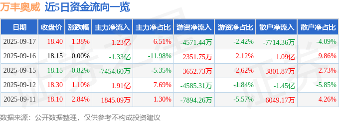 9月17日的资金流向数据方面,主力资金净流入1.23亿元,占总成交额6.51%,游资资金净流出4571.44万元,占总成交额2.42%,散户资金净流出7714.36万元,占总成交额4.09%。