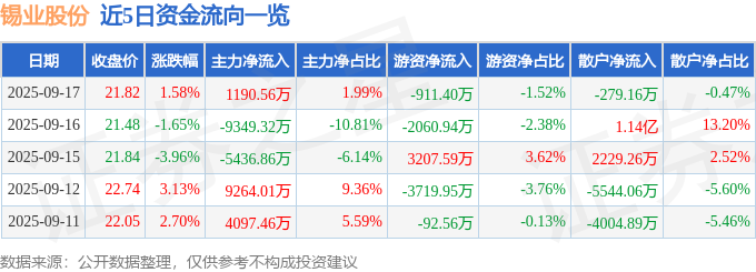 9月17日的资金流向数据方面,主力资金净流入1190.56万元,占总成交额1.99%,游资资金净流出911.4万元,占总成交额1.52%,散户资金净流出279.16万元,占总成交额0.47%。