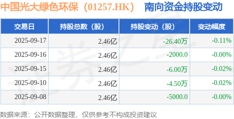 证券之星消息,9月17日南向资金减持26.4万股中国光大绿色环保(01257.HK)。近5个交易日中,获南向资金减持的有5天,累计净减持37.6万股。近20个交易日中,获南向资金减持的有20天,累计净减持190.3万股。截至目前,南向资金持有中国光大绿色环保(01257.HK)2.46亿股,占公司已发行普通股的11.88%。