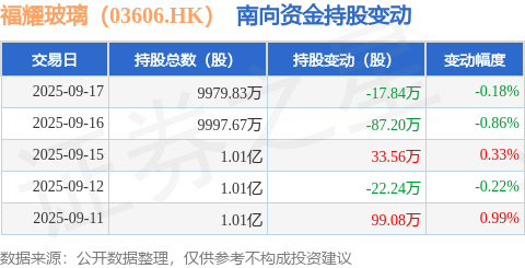 证券之星消息,9月17日南向资金减持17.84万股福耀玻璃(03606.HK)。近5个交易日中,获南向资金增持的有2天,累计净增持5.36万股。近20个交易日中,获南向资金增持的有9天,累计净增持350.71万股。截至目前,南向资金持有福耀玻璃(03606.HK)9979.83万股,占公司已发行普通股的16.44%。