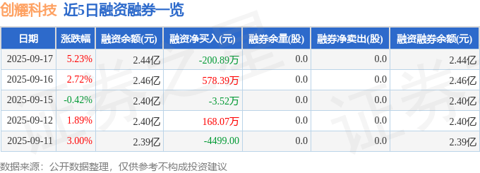 创耀科技融资融券信息显示,融资方面,当日融资买入4172.29万元,融资偿还4373.18万元,融资净偿还200.89万元。融券方面,融券卖出0.0股,融券偿还0.0股,融券余量0.0股,融券余额0.0万元。融资融券余额2.44亿元。