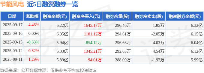 证券之星消息,截至2025年9月17日收盘,节能风电(601016)报收于3.28元,上涨4.46%,换手率3.09%,成交量184.55万手,成交额5.93亿元。