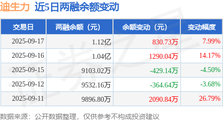 证券之星消息,9月17日,迪生力(603335)融资买入4529.4万元,融资偿还3698.66万元,融资净买入830.73万元,融资余额1.12亿元,近20个交易日中有11个交易日出现融资净买入。