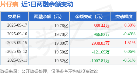 证券之星消息,9月17日,片仔癀(600436)融资买入5231.71万元,融资偿还4707.59万元,融资净买入524.12万元,融资余额19.61亿元。