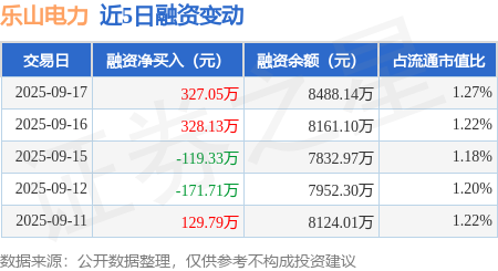 证券之星消息,9月17日,乐山电力(600644)融资买入1479.75万元,融资偿还1152.7万元,融资净买入327.05万元,融资余额8488.14万元。