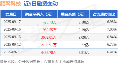 证券之星消息,9月17日,顺网科技(300113)融资买入8414.75万元,融资偿还8435.48万元,融资净卖出20.73万元,融资余额9.18亿元,近20个交易日中有13个交易日出现融资净买入。