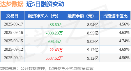 证券之星消息,9月17日,达梦数据(688692)融资买入7613.03万元,融资偿还7699.63万元,融资净卖出86.6万元,融资余额8.94亿元,近20个交易日中有13个交易日出现融资净买入。