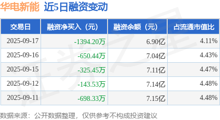 证券之星消息,9月17日,华电新能(600930)融资买入2.43亿元,融资偿还2.57亿元,融资净卖出1394.2万元,融资余额6.9亿元。