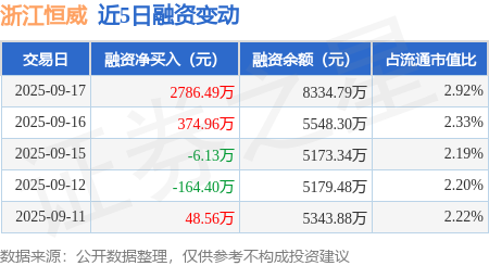 证券之星消息,9月17日,浙江恒威(301222)融资买入4671.89万元,融资偿还1885.41万元,融资净买入2786.49万元,融资余额8334.79万元,近20个交易日中有11个交易日出现融资净买入。
