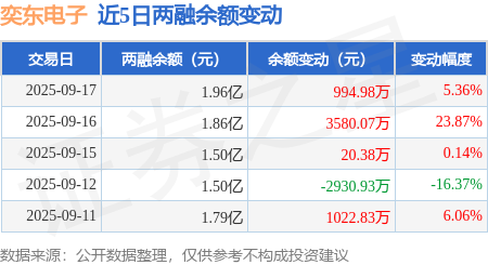 证券之星消息,9月17日,奕东电子(301123)融资买入1.29亿元,融资偿还1.19亿元,融资净买入994.98万元,融资余额1.96亿元,近3个交易日已连续净买入累计4595.42万元。