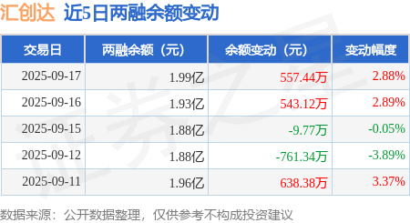 证券之星消息,9月17日,汇创达(300909)融资买入2652.15万元,融资偿还2094.7万元,融资净买入557.44万元,融资余额1.99亿元。