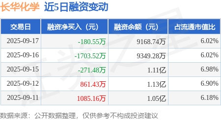 证券之星消息,9月17日,长华化学(301518)融资买入2010.94万元,融资偿还2191.49万元,融资净卖出180.55万元,融资余额9168.74万元。