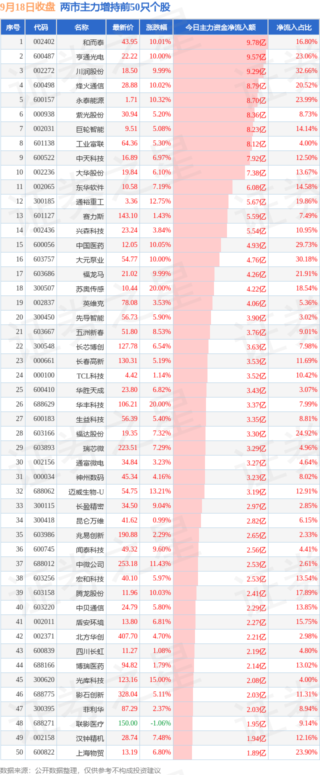两市主力增持最多的前十只个股为: