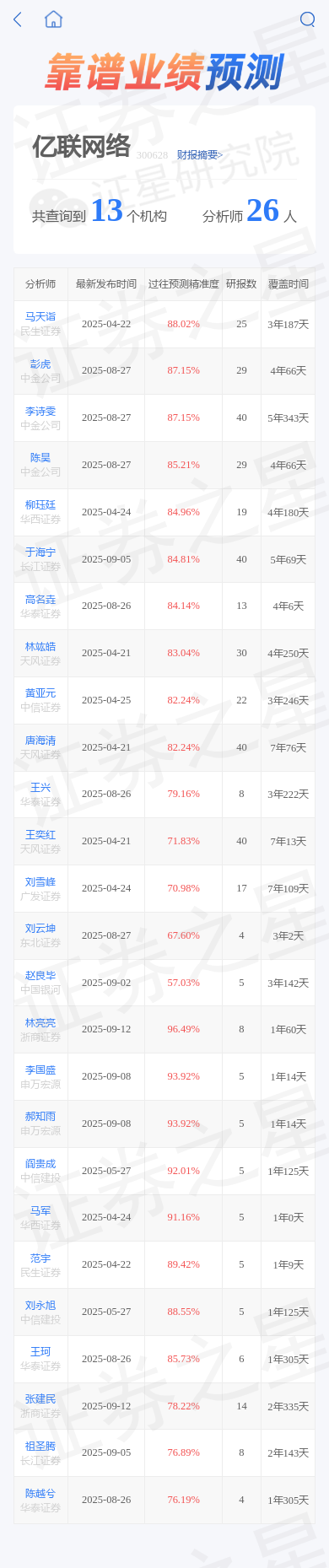 如果您对这家公司感兴趣,可以参考证星研究院统计的亿联网络的分析师业绩预测数据,其中根据民生证券的分析师马天诣预测公司未来PE为11.0(更多特色估值数据尽在证星研究院,所有数据均来源公开资料,期且所有资料都存在一定时间滞后,所有相关数据均不可作为投资决策单一依据)。