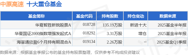 重仓中原高速的公募基金请见下表:
