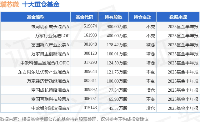 重仓瑞芯微的前十大公募基金请见下表:
