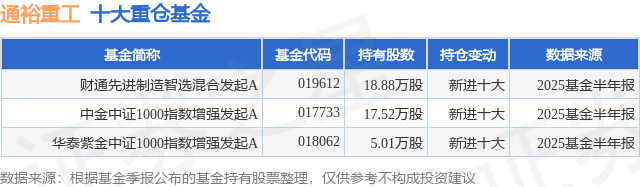 根据2025基金半年报公募基金重仓股数据,重仓该股的公募基金共3家,其中持有数量最多的公募基金为财通基金的财通先进制造智选混合发起A。财通先进制造智选混合发起A目前规模为0.19亿元,最新净值1.4118(9月17日),较上一交易日上涨0.24%,近一年上涨44.86%。该公募基金现任基金经理为朱海东 顾弘原。朱海东在任的基金产品包括:财通沪深300指数增强,管理时间为2019年7月16日至今,期间收益率为63.36%;财通智选消费股票A,管理时间为2021年1月27日至今,期间收益率为-25.9%;财通中证500指数增强A,管理时间为2023年7月13日至今,期间收益率为22.89%;财通中证1000指数增强A,管理时间为2023年11月7日至今,期间收益率为31.64%。顾弘原在任的基金产品包括:财通智选消费股票A,管理时间为2022年8月5日至今,期间收益率为-11.19%;财通中证ESG100指数增强A,管理时间为2023年1月16日至今,期间收益率为18.12%;财通多策略福瑞混合发起式(LOF)C,管理时间为2023年4月11日至今,期间收益率为4.52%;财通中证500指数增强A,管理时间为2023年7月13日至今,期间收益率为22.89%。