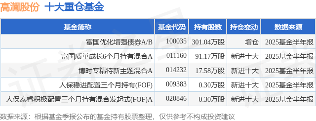 重仓高澜股份的公募基金请见下表: