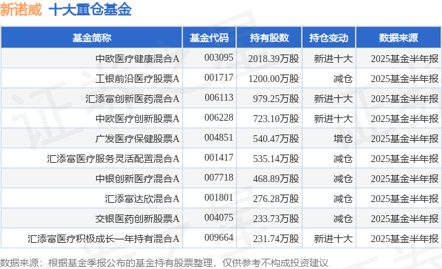 根据2025基金半年报公募基金重仓股数据,重仓该股的公募基金共60家,其中持有数量最多的公募基金为中欧基金的中欧医疗健康混合A。中欧医疗健康混合A目前规模为156.38亿元,最新净值2.075(9月17日),较上一交易日下跌0.06%,近一年上涨52.27%。该公募基金现任基金经理为葛兰 赵磊。葛兰在任的基金产品包括:中欧明睿新起点混合,管理时间为2018年7月12日至今,期间收益率为72.78%;中欧医疗创新股票A,管理时间为2019年2月28日至今,期间收益率为76.8%。