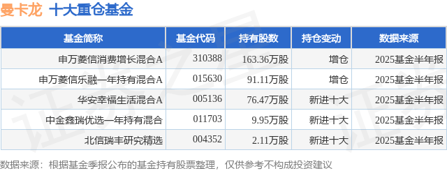 重仓曼卡龙的公募基金请见下表: