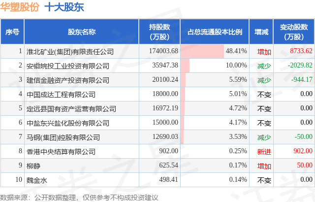根据华塑股份2025年中报公布的十大股东详情如下: