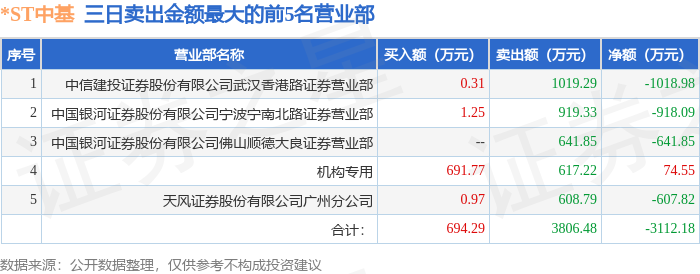 证券之星消息,沪深交易所2025年9月18日公布的交易公开信息显示,*ST中基(000972)因连续三个交易日内,跌幅偏离值累计达到12%的ST证券、*ST证券和未完成股改证券登上龙虎榜。此次是近5个交易日内第2次上榜。