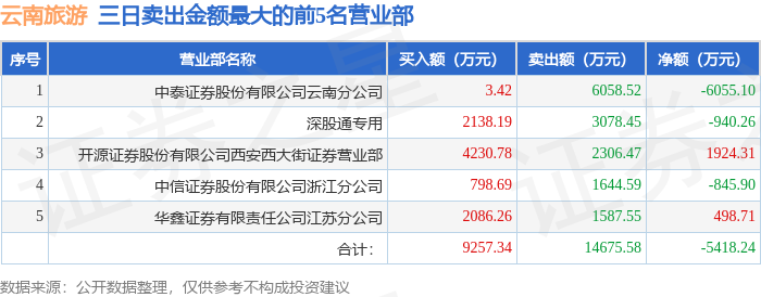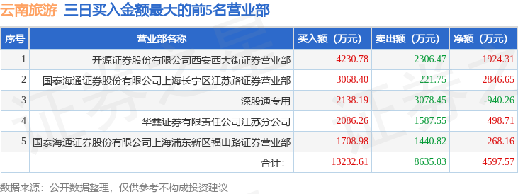 证券之星消息,沪深交易所2025年9月18日公布的交易公开信息显示,云南旅游(002059)因连续三个交易日内,涨幅偏离值累计达到20%的证券登上龙虎榜。此次是近5个交易日内第1次上榜。